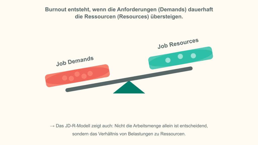 Warum geraten manche Menschen in die Burnout-Spirale und andere nicht? Das Job-Demands-Resources-Modell (JD-R-Modell) liefert eine wissenschaftlich fundierte Erklärung im Hinblick auf beruflich bedingtes Burnout (Demerouti et al., 2001; Bakker & Demerouti, 2017).