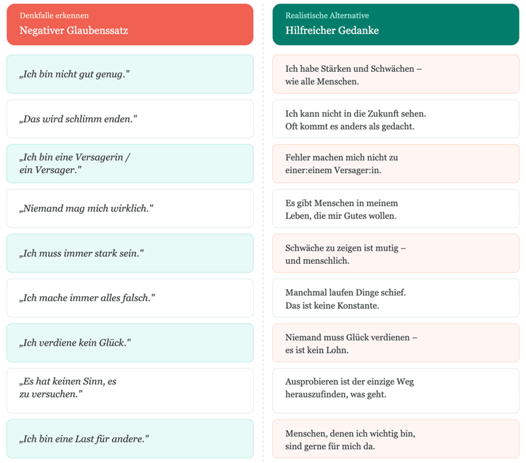 Häufige negative Denkmuster und ihre realistischen Alternativen