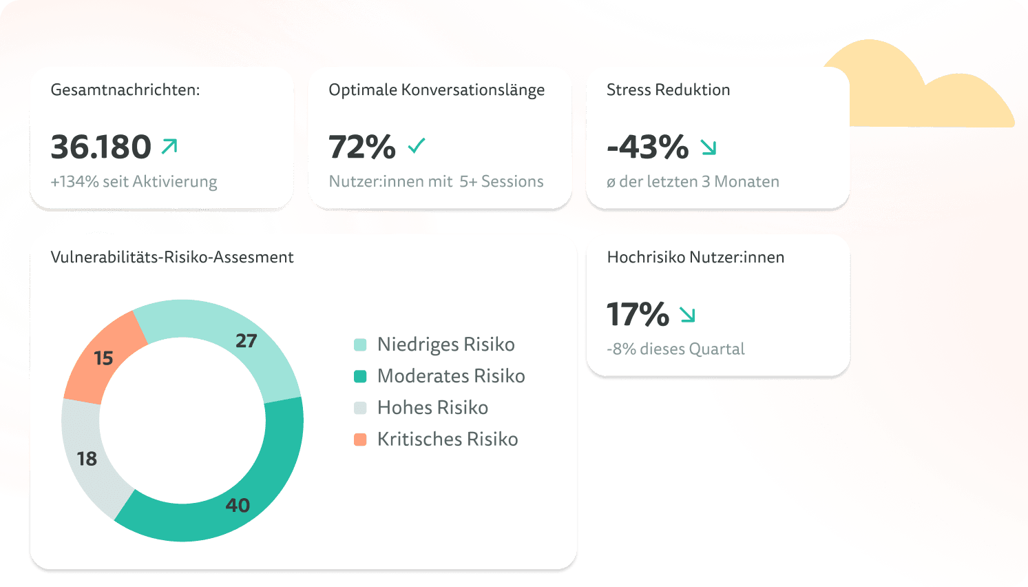 Mentale Gesundheitsprobleme führen am Arbeitsplatz zum signifikanten Anstieg der Fehlzeiten. Unterstütze dein Team präventiv mit evidenzbasierten Methoden und modernster KI-gestützter Technologie.