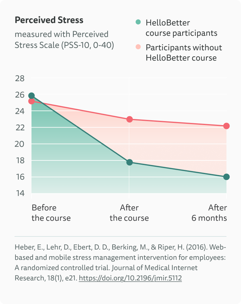 The effectiveness of our course has been proven in various scientific studies. Study report: "Online training for occupational stress management". The study report of this study can be found here:
